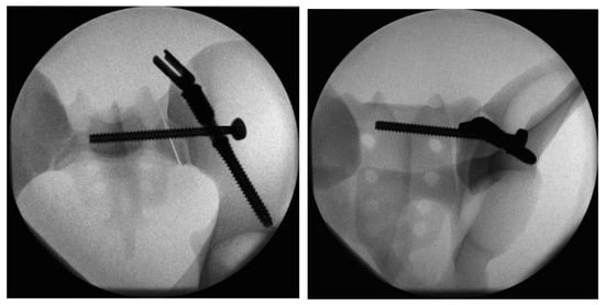 In order to further optimize the technique of the triangular osteosynthesis procedure, additional modifications were made to perform this operation in a minimally invasive or percutaneous manner [5,31]. This was necessary due to the relevant soft tissue complications that are commonly associated with the open procedures [5,32]. In their analysis of 140 cases of pelvic fragility fractures, Rommens et al. found that surgical complications occurred in 19% of the percutaneous treatment group and in 44% of the open treatment group (p = 0.006) [8]. Significant differences were observed in the rates of implant failure and surgical revisions. These were more prevalent in the open treatment group compared to the percutaneous treatment group. The rates of implant failure were 0% and 7% (p = 0.02), respectively, while the rates of revision surgery were 13% and 29% (p = 0.02), respectively [8]. It is of particular importance to pay close attention to the posterior crest of the ilium, particularly in older and thinner patients and in cases of existing soft tissue damage. This is due to the prominence of the iliac screw in triangular osteosynthesis, which can cause complications [12,19].