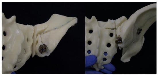 This study involves the use of 16 (8 per group) artificial pelvic bones (LS4060, Synbone AG, Zizers, Switzerland) that mimick osteoporosis. This bone model has been employed in numerous biomechanical investigations of the posterior pelvic ring, yielding valuable insights [27,28].