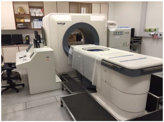 In our center, the HIFU system (JC model, Chongqing Haifu Technology Company, Chongqing, China) was used (Figure 1). All patients had pre-treatment MRI for assessment and planning. Patients were considered eligible for HIFU if the following criteria were met: (1) pre-menopausal women over 35 years of age, with special consideration for women less than 35; (2) symptoms related to the dominant uterine fibroid or adenomyosis intractable to standard medical therapy; (3) abdominal wall thickness < 5 cm; (4) uterus size < 24 weeks gestation on clinical examination; and (5) dominant uterine fibroid diameter < 12 cm or localized adenomyotic lesion < 10 cm via MRI. Women with a history of abdominal or pelvic surgery resulting in extensive scarring of the lower abdominal wall, especially those with midline and/or repeated laparotomy scars, were excluded. Previous reports from our center have outlined the details of HIFU therapy [,]. Each patient had pre-treatment planning prior to treatment to simulate the course of therapy, which involved an evaluation of the sonication path, target depth, distance from sacrum to target, and chance of bowel loop existence along the path. All patients had mechanical bowel preparation via phospho-soda fleet prior to HIFU therapy. A urinary catheter was placed in the bladder to control the bladder volume. Patients were placed in a prone position under intravenous conscious sedation. The target uterine lesion was localized using ultrasound. With the therapeutic transducer’s acoustic power output at 350–400 W and continuous sweeps from the deep to shallow region, the desired volume of the target fibroid or adenomyoma were ablated using real-time ultrasound monitoring. The grey scale change was observed with ultrasound and used to determine the ablation adequacy. If necessary, post-treatment analgesics, such as paracetamol and diclofenac, were used to relieve discomfort. After twenty-four hours, patients were discharged.
