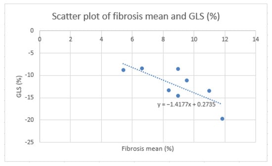 Scatter plot of fibrosis mean (%) compared to GLS (%).