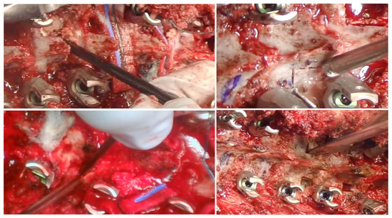 Intraoperative pictures of Ponte’s osteotomy technique when pedicle screws placed: wide resection of superior and inferior facets, laminae, ligament flavum, and spinous processes.
