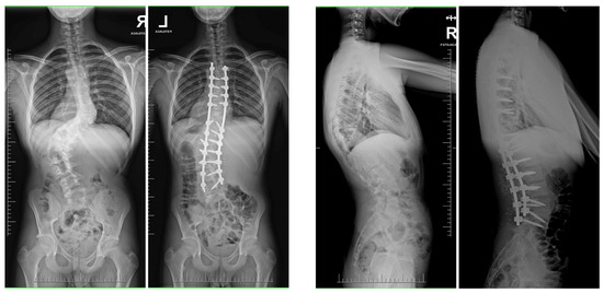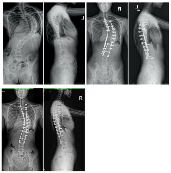 - Grabala, P.; Kowalski, P.; Rudziński, M.J.; Polis, B.; Grabala, M. The Surgical Management of Severe Scoliosis in Immature Patient with a Very Rare Disease Costello Syndrome-Clinical Example and Brief Literature Review. Life 2024, 14, 740. [Google Scholar] [CrossRef]