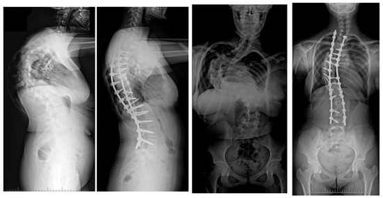 - Potaczek, T.; Jasiewicz, B.; Tesiorowski, M.; Zarzycki, D.; Szcześniak, A. Treatment of idiopathic scoliosis exceeding 100 degrees—Comparison of different surgical techniques. Ortop. Traumatol. Rehabil. 2009, 11, 485–494. [Google Scholar]