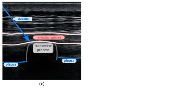 - Cowie, B.; McGlade, D.; Ivanusic, J.; Barrington, M.J. Ultrasound-guided thoracic paravertebral blockade: A cadaveric study. Anesth. Analg. 2010, 6, 1735–1739. [Google Scholar] [CrossRef] [PubMed]