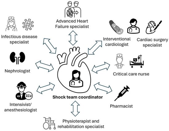 - Taleb, I.; Koliopoulou, A.G.; Tandar, A.; McKellar, S.H.; Tonna, J.E.; Nativi-Nicolau, J.; Villela, M.A.; Welt, F.; Stehlik, J.; Gilbert, E.M.; et al. Shock Team Approach in Refractory Cardiogenic Shock Requiring Short-Term Mechanical Circulatory Support: A Proof of Concept. Circulation 2019, 140, 98–100. [Google Scholar] [CrossRef] [PubMed]