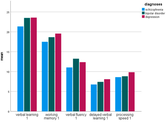 A variety of instruments have been found to be useful in assessing cognitive impairment in psychiatric disorders [24]. Some test batteries provide differentiated information about the whole range of cognitive and social cognitive domains, e.g., the MATRICS Consensus Cognitive Battery [25]. Other instruments have their strength in the rapid detection of symptoms of a specific disorder in the sense of a screening instrument (e.g., Brief Assessment of Cognition in Schizophrenia [26,27], and for transnosographic studies, those scales are particularly helpful that have been constructed independently of differentiating diagnostic features, such as the Screen for Cognitive Impairment in Psychiatry (SCIP) [28,29,30,31].