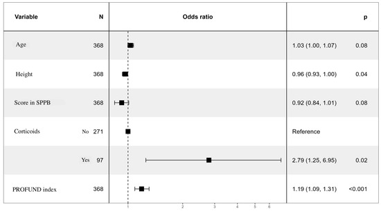 | SPPB (median, IQR) | 2 (0, 5) | 5 (2, 9) | p < 0.001 |
