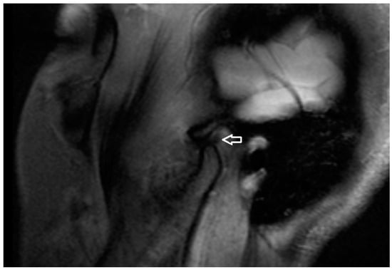PD TSE SPAIR Sagittal MRI scan (articular disc—white arrow).