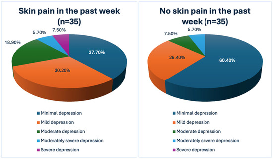 The impact of skin pain on the severity of depression as evaluated by the Patient Health Questionnaire-9 (PHQ-9).