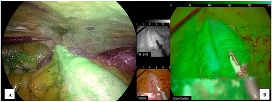 “In the blackness of the night, I see a sparkle of a star” sings the lyrics of a song by Yusuf Islam/Cat Stevens. Indeed, indocyanine green (ICG) proves to be a useful illumination source that aids in the “blackness” of many challenging surgical procedures. One fundamental principle in surgery is “never cut what you can’t see” [1]. However, when visual cues are limited, surgeons rely on other senses for guidance. In minimally invasive procedures, the challenge of working without direct tactile feedback and with two-dimensional vision constantly challenges this principle. Distinguishing between structures that need to be removed, such as tumor tissue and lymph nodes, and those that must be preserved, such as blood vessels and bile ducts, is crucial in everyday surgical scenarios [2,3,4,5]. Kitai’s pioneering work on utilizing ICG for fluorescence-guided surgery (FGS) while performing sentinel node biopsy for breast cancer opened a new era of image-guided surgery in the realm of general surgery [6]. Since then, ICG fluorescence imaging has become an extensive scope of research. In the past, ICG, a water-soluble tricarbocyanine dye, found widespread use in determining cardiac output, evaluating hepatic function and liver blood flow, and investigating chorioretinal disorders. Its safety profile is robust, with adverse events rarely occurring below a dosage of 0.5 mg/kg. Upon intravenous administration, ICG swiftly binds to plasma lipoproteins, exhibiting a plasma half-life of 3–5 min and biliary excretion within 15–20 min. Then, ICG is cleared exclusively through the liver and then eliminated through the bile. It does not undergo metabolism. In the literature, there are no complications associated with the use of ICG for surgery. It is known that in very rare cases, the injection of preparations of indocyanine green can cause nausea and anaphylactoid or anaphylactic reactions (<1/10,000). In patients with terminal renal failure, the possibility of an anaphylactic reaction seems to have increased, and spasms of the coronary artery have also been described.