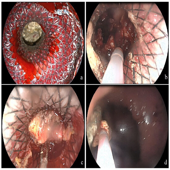 - Bang, J.Y.; Wilcox, C.M.; Navaneethan, U.; Hawes, R.H.; Varadarajulu, S. Treatment of walled-off necrosis using lumen-apposing metal stents versus plastic stents: A systematic review and meta-analysis of data from randomized trials. Endoscopy 2023, 56, 184–195. [Google Scholar] [CrossRef] [PubMed]