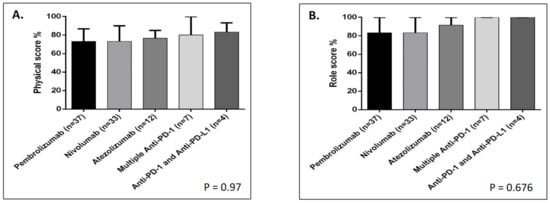 Although ICIs have been recently implemented in clinical practice, they have become the standard of care in patients diagnosed with several types of cancer, given their benefits in regards to disease remission and progression []. This widespread use of ICIs urges us to further investigate their impact on patient quality of life, whether used as primary, adjuvant, or second-line therapies. In this study, we prospectively investigated the HRQoL in real-world adult patients treated with different ICIs regimens in two tertiary, educational hospitals.