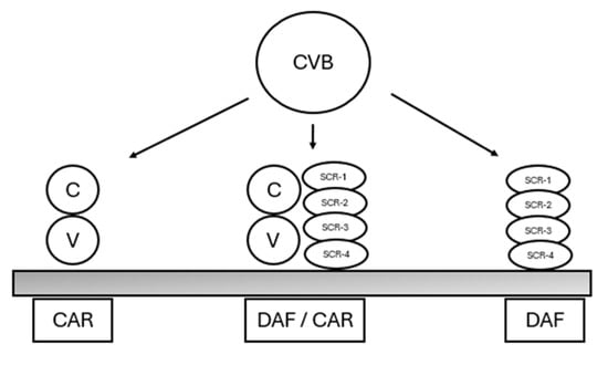 - Shafren, D.R.; Bates, R.C.; Agrez, M.V.; Herd, R.L.; Burns, G.F.; Barry, R.D. Coxsackieviruses B1, B3, and B5 use decay accelerating factor as a receptor for cell attachment. J. Virol. 1995, 69, 3873–3877. [Google Scholar] [CrossRef]