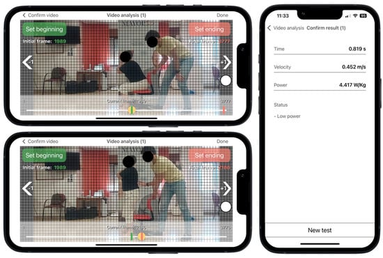 The importance of assessing muscle power in older adults extends beyond its associations with functional mobility and health-related adverse events. Muscle power is often proposed as the primary therapeutic target for resistance training interventions in this population []. Additionally, muscle power assessed during the rising phase of a sit-to-stand test has shown greater responsiveness after an exercise training program compared with the total time to complete the test or other clinical measures, such as isometric quadriceps strength, the timed up and go test, and the Berg Balance Scale []. Since muscle power declines earlier and more rapidly than muscle strength and mass, it should be considered an important complementary measure in daily clinical practice, as it could potentially detect earlier functional impairment and health-related adverse outcomes than current sarcopenia measures. Considering that most health care professionals do not diagnose sarcopenia, mainly due to lack of equipment and time constraints [,,], measuring muscle power using an affordable instrument could potentially reduce the incidence of adverse health-related consequences, inform about prognosis, and reduce health care cost. Moreover, engaging mobile applications enhance evaluation by providing positive experiences and boosting motivation. Interactive features and user-friendly interfaces could make evaluations enjoyable, fostering understanding and encouraging continued participation.