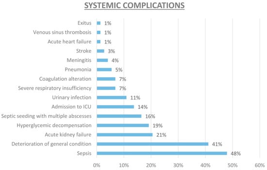 In terms of systemic complications, sepsis was observed in 48% of the cohort, and 41% of the cohort exhibited deterioration in their general health status. Sepsis is defined as a life-threatening organ dysfunction caused by a dysregulated host response to infection [8].