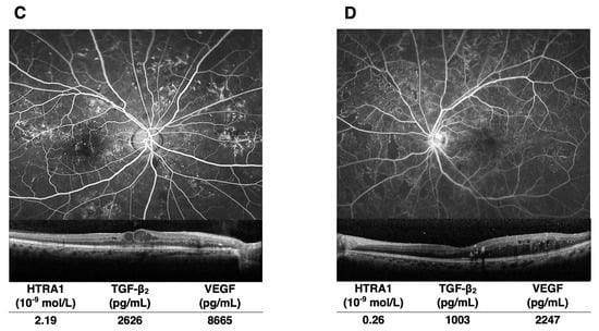 Fukushima, Y.; Takahashi, S.; Nakamura, M.; Inoue, T.; Fujieda, Y.; Sato, T.; Noguchi, S.; Tsujikawa, M.; Sakaguchi, H.; Nishida, K. An Association between HTRA1 and TGF-β2 in the Vitreous Humor of Patients with Chorioretinal Vascular Diseases. J. Clin. Med. 2024, 13, 5073. https://doi.org/10.3390/jcm13175073
