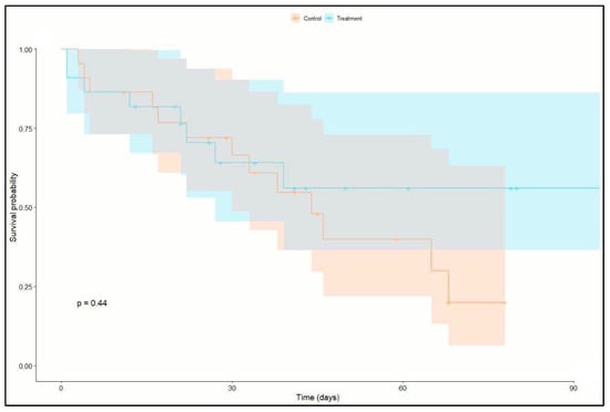 | 28-day mortality, no. (%) | 12(27) | 5(23) | 7(32) | 0.735 |