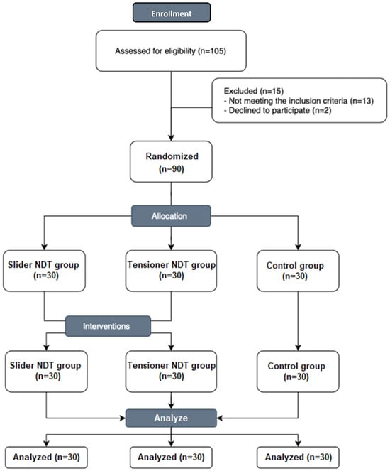 | Variable | Slider Technique Group (n a = 30) | Tensioner Technique Group (n = 30) | Control Group (n = 30) | p-Value |