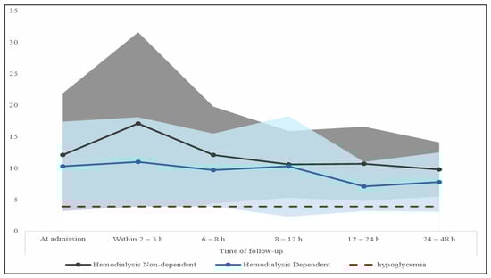 - Abe, M.; Kalantar-Zadeh, K. Haemodialysis-induced hypoglycaemia and glycaemic disarrays. Nat. Rev. Nephrol. 2015, 11, 302–313. [Google Scholar] [CrossRef] [PubMed]