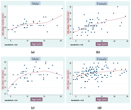 In addition, it was observed that the growth of affected condyles of JIA subjects tends to stop earlier than the condyles of the healthy ones.