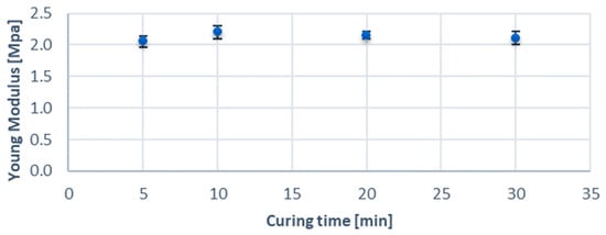 Young’s modulus [MPa] vs. curing time.