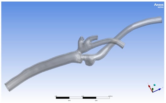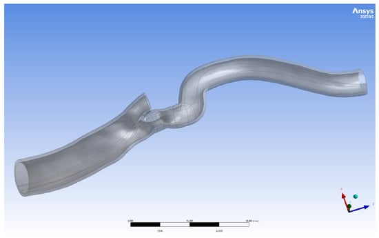 Geometries were obtained using carotid CT angiography. The DICOM files were used to create 3D models of arteries with atherosclerotic plaques and aneurysms. Subsequently, the models were exported as .stl files. Subsequently, the raw 3D models were edited using Autodesk Meshmixer 3.5 to eliminate distortions observed in the models as small spikes resulting from the finite resolution of clinical imaging. The preliminary denoised 3D models were exported to ANSYS SpaceClaim 2023R2 in the next stage. In this software, the shrinkwrap tool was used to remove spare noise from the models. The complexity of the facets was reduced using Auto Skin. Next, the geometries were trimmed at the ends. The obtained geometries were the fluid volumes. The raw model was copied and edited using sculpting tools to reconstruct its shape without constriction to capture the physiological thickness of the arteries in the stenotic region. These models were also revised in ANSYS SpaceClaim, similar to the previous models. However, the Shell tool was used after Auto Skin to create a 0.75 mm thicker model. The cleaning procedure was repeated. Both models were exported to the ANSYS DesignModeler 2023R2. In ANSYS DesignModeler, Boolean operations were used to create a hollow shell geometry and separate the fluid volume. The obtained geometries were subsequently extruded for better 3D printing and connected to the experimental setup.