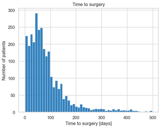 As a potential confounder, the waiting time until surgery was evaluated and can be seen in Figure 1. The majority of patients were able to receive cataract surgery within 200 days after the indication for surgery was established.