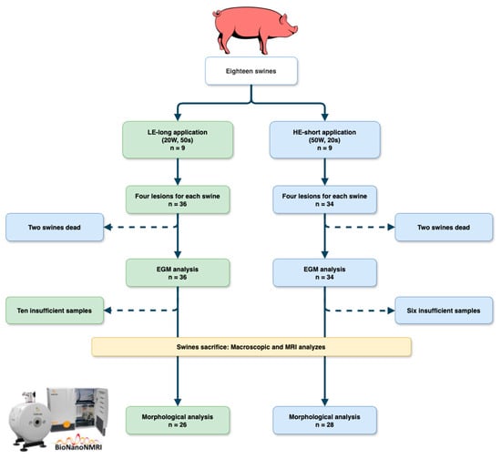 Eighteen swines were used for the experiment, nine in each group. The flowchart of this study is shown in Figure 5.