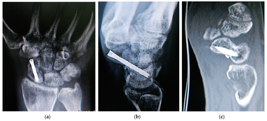 - Filan, S.L.; Herbert, T.J. Herbert Screw Fixation of Scaphoid Fractures. J. Bone Jt. Surg. Br. 1996, 78, 519–529. [Google Scholar] [CrossRef]
