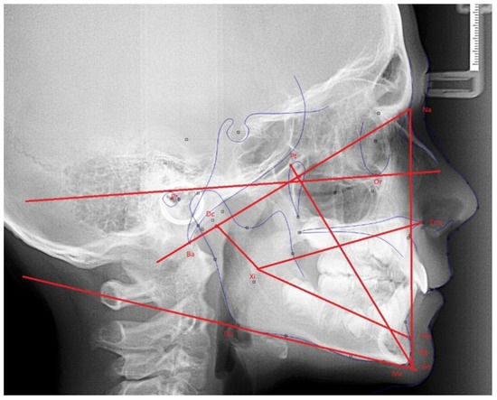 Subsequently, all patients participating in this study were scheduled for oral, facial, and radiographic examination, where facial and cephalometric features were taken into consideration for the subsequent Ricketts analysis (Figure 1). Lateral cephalometric radiographs were obtained for each subject with the head in the natural position and the teeth in maximum intercuspidation [22,23,24]. These lateral cephalometric radiographs were digitally measured by the same investigator (the first author of this study) using Gesden G5 version 5.43 and Ortomed software version 4.5.