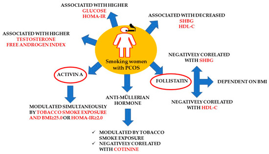 Figure 1 summarizes the significant relationships observed in the group of women with PCOS in response to tobacco smoke exposure.