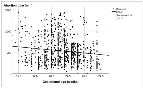 Knowledge concerning potential risk factors for failure is important for clinical decision making in management. Such knowledge can help clinicians adjust dosages or routes of different regimens and is also useful for patient counseling and predicting successful outcomes. Fetal life status, gestational age, misoprostol regimens, and maternal body mass index (BMI) have been reported to affect the success rate of termination [,,,]. Nevertheless, the number of such studies is very limited and mostly based on small sample sizes or heterogeneous data without control of confounding factors. This might be due to the fact that misoprostol is highly effective in pregnancy termination, resulting in only a small number of cases with termination failure in most previous studies, leading to difficulty in analyzing the risk factors for failure with high reliability. Additionally, some potential risk factors may theoretically increase the risk of failure, but no confirmatory studies support this. For example, parity might affect the failure rate of second-trimester termination, as there is evidence that high parity is an independent factor associated with a higher success rate in labor induction at term than low parity []. It is well known that multiparity shortens the labor curve compared to nulliparity. A prolonged labor duration could extend the overall induction time beyond 48 h, meeting the criteria for induction failure. Therefore, theoretically, parity might influence the outcome of second-trimester termination as well. However, no conclusive evidence has been established in the literature regarding whether parity is associated with the failure rate of second-trimester termination when using misoprostol. Therefore, we conducted this study with a large sample size, primarily aimed at determining the potential risk factors for failure of second-trimester termination with misoprostol as a single agent between 14 and 28 weeks of gestation.