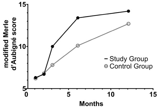 To compare baseline characteristics between the study group and the control group, the non-parametric Mann–Whitney U test was utilized for continuous variables, while the Chi-squared test was employed for categorical variables. Functional recovery over time was examined using a general linear model for repeated measures analysis of variance. The cohort was divided based on the implants utilized, and measurements were taken at postoperative intervals of 1, 2, 3, 6, and 12 months. Differences in trends over the year between subgroups was assessed using between-subject effects. The Mann–Whitney U test was employed for the comparison of functional scores at specific time points. All statistical analyses were conducted using SPSS software (version 17.0; IBM, Armonk, NY, USA), with the significance level set at p < 0.05.