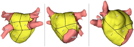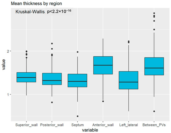From the point of view of anatomical description, it is essential to recognise that in the LA, the thickest regions correspond to the anterior wall and the area between the pulmonary veins (Figure 6 and Figure 7 and Table 2).