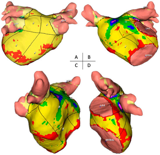 - Mulder, M.J.; Kemme, M.J.; Hagen, A.M.; Hopman, L.H.; van de Ven, P.M.; Hauer, H.A.; Tahapary, G.J.; Götte, M.J.; van Rossum, A.C.; Allaart, C.P. Impact of local left atrial wall thickness on the incidence of acute pulmonary vein reconnection after Ablation Index-guided atrial fibrillation ablation. IJC Hearth Vasc. 2020, 29, 100574. [Google Scholar] [CrossRef] [PubMed] [PubMed Central]