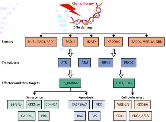 The term alopecia refers to the partial or total absence of hair in any area where it is expected to be present. Alopecia has many variants that are categorized as localized or diffuse, temporary or permanent, and scarring or non-scarring. Chemotherapy-induced alopecia is most prominent on the scalp, presents suddenly, and initially manifests as patterned hair loss with a predilection for areas with low total hair density, such as the frontal or occipital hairlines. Hair-shaft shedding manifests as diffuse anagen or telogen effluvium and results from defined disturbances of normal hair-shaft production and of hair-follicle cycling. Its reversibility depends on the degree of damage to hair follicle stem cells. Although chemotherapeutic agents have distinct mechanisms of action and hair loss patterns, the overall final clinical presentation of chemotherapy-induced alopecia across patients and the principal hair follicle damage-response pathways are similar [3]. The pathophysiology of chemotherapy-induced alopecia is complex and not fully understood. Much of the current understanding has been gleaned from research on an adult rat model, newborn rats, and the C57BL/6 mouse model. Many chemotherapeutic agents share proapoptotic pathways, especially p53-mediated signalling, which specifically plays a crucial role in chemotherapy-induced alopecia. Figure 5 illustrates molecular damage-response pathways that result in death by apoptosis in cells that are in the process of mitotic division, including the keratinocytes proliferating in the hair bulb.