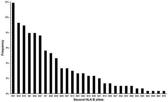 The distribution of HLA B alleles other than the B*44 allele is presented in Figure 2.