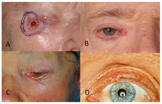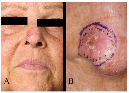 - Fidelis, M.C.; Stelini, R.F.; Staffa, L.P.; de Moraes, A.M.; Magalhães, R.F. Basal cell carcinoma with compromised margins: Retrospective study of management, evolution, and prognosis. An. Bras. Dermatol. 2021, 96, 17–26. [Google Scholar] [CrossRef]