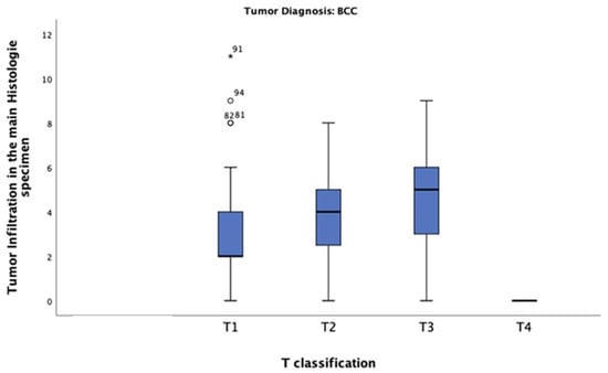 - Welsch, M.J.; Troiani, B.M.; Hale, L.; Deltondo, J.A.; Helm, K.F.; Clarke, L.E. Basal cell carcinoma characteristics as predictors of depth of invasion. J. Am. Acad. Dermatol. 2012, 67, 47–53. [Google Scholar] [CrossRef]