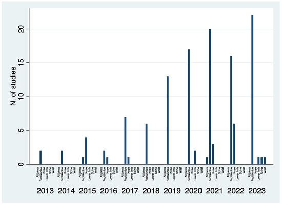 APA StyleBernasconi, A., Dechir, Y., Izzo, A., D’Agostino, M., Magliulo, P., Smeraglia, F., de Cesar Netto, C., International Weightbearing CT Society, & Lintz, F. (2024). Trends in the Use of Weightbearing Computed Tomography. Journal of Clinical Medicine, 13(18), 5519. https://doi.org/10.3390/jcm13185519
