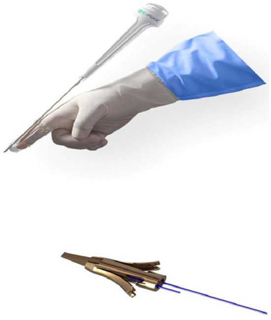 Sacrospinous ligament (SSL) fixation is a well-established transvaginal surgical approach to correct apical POP. It can be performed either unilaterally or bilaterally; however, the technique requires deep dissection to explore the SSL and advanced transvaginal surgical skills. The EnPlace® device is a minimally invasive approach for transvaginal SSL fixation of apical POP (Figure 2). The device enables SSL fixation without extensive dissection or mesh. It has been proven safe and effective [16,17]. The present study aimed to evaluate the short-term safety and efficacy of transvaginal SSL fixation by the EnPlace® device for stage III or IV apical POP in older patients compared to younger patients.
