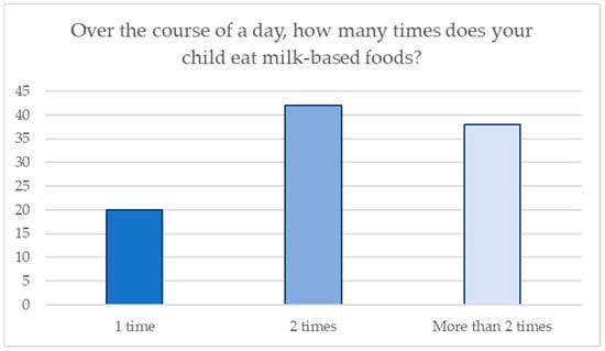 Special attention was given to their milk intake in the analysis. Parents were asked how often they fed their child milk. Figure 1 shows the distribution of the frequency of milk-based food consumption. Furthermore, for question n.11, 68% of the parents added cookies to their children’s milk-based baby food, whereas 32% of them did not.