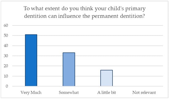 Finally, it is necessary to reiterate that tooth decay is the most common oral disease. However, it is a common belief that primary dentition does not influence permanent dentition. According to this erroneous concept, preventive measures suitable for the maintenance of pediatric patients’ oral health are often not implemented []. This argument has been proven with a survey administered to parents whose children were 4 to 24 months old, which consisted of thirty-five questions. Furthermore, nutrition is impacted not only by parental knowledge but also by the socioeconomic level of families and cultural habits, among other factors.