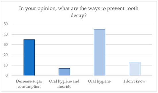 Distribution of answers regarding knowledge of preventive measures for tooth decay.