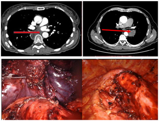 - Collaud, S.; Waddell, T.K.; Yasufuku, K.; Oreopoulos, G.; Rampersaud, R.; Rubin, B.; Roche-Nagle, G.; Keshavjee, S.; Perrot, M. de Thoracic Aortic Endografting Facilitates the Resection of Tumors Infiltrating the Aorta. J. Thorac. Cardiovasc. Surg. 2014, 147, 1178–1182. [Google Scholar] [CrossRef] [PubMed]