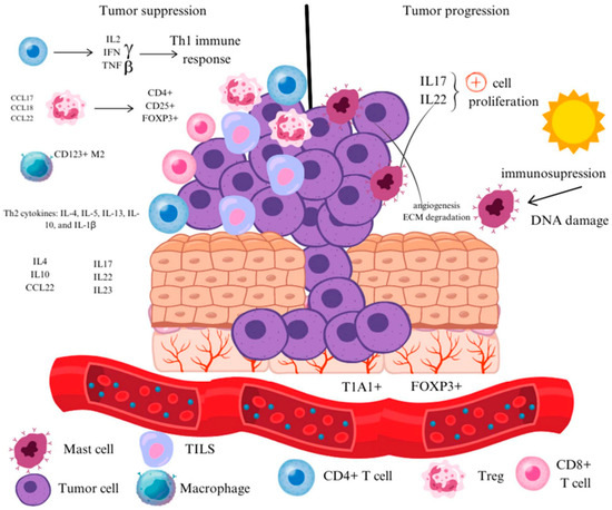 - Kim, J.; Modlin, R.L.; Moy, R.L.; Dubinett, S.M.; McHugh, T.; Nickoloff, B.J.; Uyemura, K. IL-10 production in cutaneous basal and squamous cell carcinomas. A mechanism for evading the local T cell immune response. mechanism for evading the local T cell immune response. J. Immunol. 1995, 155, 2240–2247. [Google Scholar] [CrossRef] [PubMed]