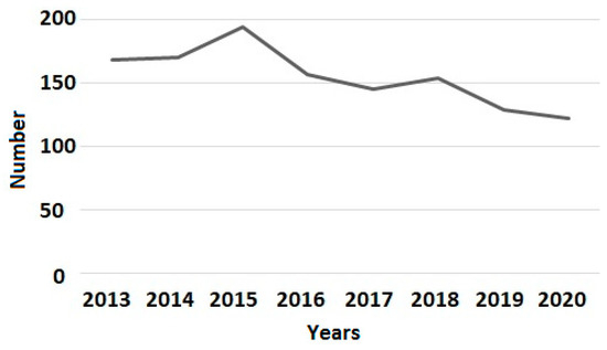 Incidence of CDT from 2013 to 2020. CDT—catheter-directed thrombolysis.