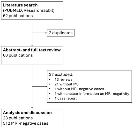 - Zentner, J. MRI-Negative Epilepsies. In Surgical Treatment of Epilepsies: Diagnosis, Surgical Strategies, Results; Zentner, J., Ed.; Springer International Publishing: Cham, Switzerland, 2020; pp. 209–222. ISBN 978-3-030-48748-5. [Google Scholar]