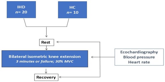 Study flowchart. IHD: Ischemic Heart Disease; HC: Healthy Controls; MVC: Maximal Voluntary Contraction.