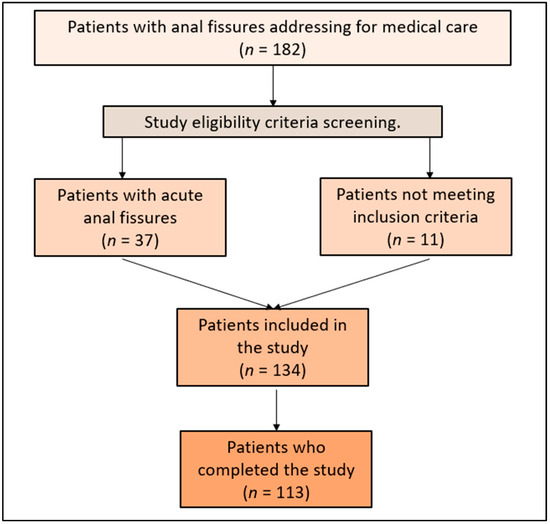6. Jahnny, B.; Ashurst, J.V. Anal Fissures. In StatPearls [Internet]; StatPearls Publishing: Treasure Island, FL, USA, 2023. Available online: https://www.ncbi.nlm.nih.gov/books/NBK526063/ (accessed on 14 November 2022).
